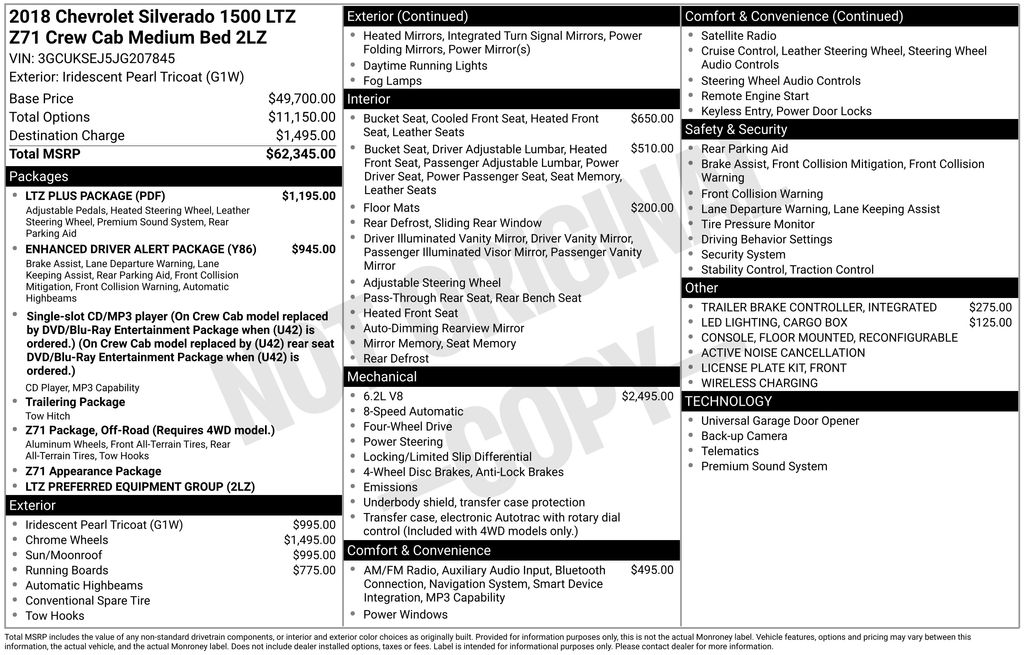 Mileage: 127,706 miles miles, MPG Range: 16/22 mpg, MPGe: 18 mpg, Engine: 6.2L V-8, Transmission: 8-Speed Automatic with Overdrive, Drive Line: 4WD, Exterior Color: Iridescent Pearl Tricoat, Interior Color: Cocoa/Dune,Stock #: 3507845P