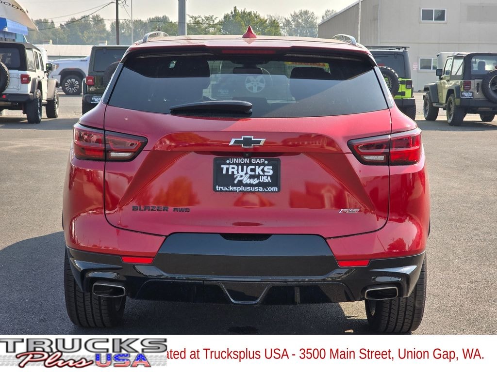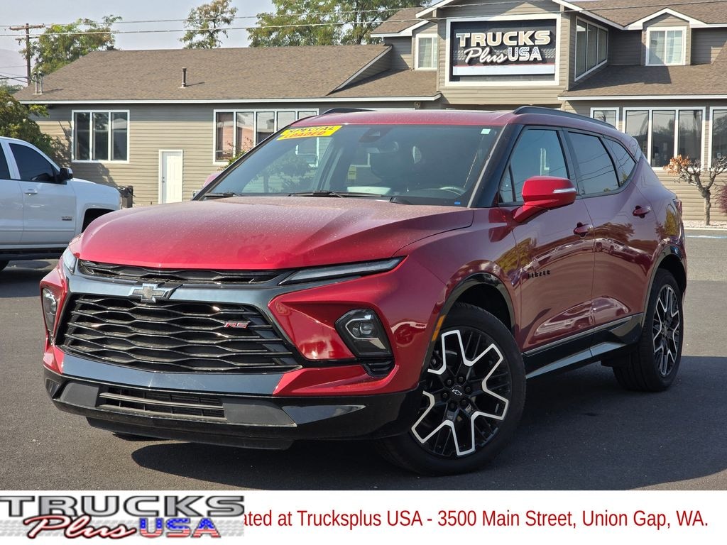 Clean CARFAX. Radiant Red Tintcoat 2023 Chevrolet Blazer RS 3.6L V6 SIDI 9-Speed Automatic with Overdrive AWD 4D Sport Utility AWD, Apple CarPlay/Android Auto, Four wheel independent suspension, Heated door mirrors, Heated Driver & Front Passenger Seats, Heated Steering Wheel, Navigation System, Premium audio system: Chevrolet Infotainment 3 Premium, Remote keyless entry, Sport Package, 3.49 Final Drive Axle Ratio, 4-Wheel Disc Brakes, 6-Way Power Front Passenger Seat Adjuster, 8 Speakers, 8-Way Power Driver Seat Adjuster, ABS brakes, Air Conditioning, Alloy wheels, AM/FM radio: SiriusXM with 360L, Auto High-beam Headlights, Auto-dimming door mirrors, Auto-dimming Rear-View mirror, Automatic temperature control, Black Lug Nut & Wheel Lock Kit (LPO), Bodyside Lower Decal (LPO), Bose Premium 8-Speaker Audio System Feature, Brake assist, Bumpers: body-color, Child-Seat-Sensing Airbag, Compass, Delay-off headlights, Driver door bin, Driver vanity mirror, Dual front impact airbags, Dual front side impact airbags, Electronic Stability Control, Emergency communication system: OnStar and Chevrolet connected services capable, Enhanced Convenience Package, Front anti-roll bar, Front Bucket Seats, Front Center Armrest, Front dual zone A/C, Front reading lights, Fully automatic headlights, Garage door transmitter, Heated front seats, Heated Rear Outboard Seating Positions, Heated steering wheel, Illuminated entry, Knee airbag, Leather Shift Knob, Low tire pressure warning, Memory Settings For Driver Seat & Exterior Mirrors, Not Equipped w/Rear Park Assist, Occupant sensing airbag, Outside temperature display, Overhead airbag, Overhead console, Panic alarm, Passenger door bin, Passenger vanity mirror, Pedal Cover Set, Perforated Leather-Appointed Seat Trim, Power door mirrors, Power Driver Lumbar Control, Power driver seat, Power Liftgate, Power Panoramic Tilt-Sliding Sunroof, Power passenger seat, Power steering, Power Tilt & Telescoping Steering Column, Power windows, Preferred Equipment Group 1RS, Radio data system, Radio: Chevrolet Infotainment 3 Premium System, Rear anti-roll bar, Rear Park Assist w/Audible Warning, Rear reading lights, Rear seat center armrest, Rear window defroster, Rear window wiper, Ride & Handling Suspension, Security system, SiriusXM w/360L, Speed control, Speed-sensing steering, Split folding rear seat, Spoiler, Steering wheel mounted audio controls, Tachometer, Telescoping steering wheel, Tilt steering wheel, Traction control, Trip computer, Turn signal indicator mirrors, Variably intermittent wipers, Ventilated Driver & Front Passenger Seats, Voltmeter, Wheels: 20" Technical Gray Aluminum, Wheels: 21" High Gloss Black w/Machined Face, AWD, Apple CarPlay/Android Auto, Four wheel independent suspension, Heated door mirrors, Heated Driver & Front Passenger Seats, Heated Steering Wheel, Navigation System, Premium audio system: Chevrolet Infotainment 3 Premium, Remote keyless entry, Sport Package.