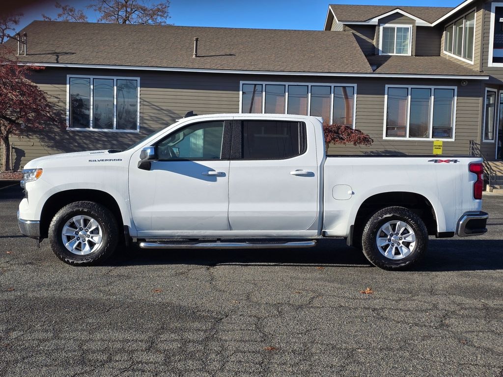 Recent Arrival! Clean CARFAX. White 2024 Chevrolet Silverado 1500 LT 2.7L I4 Turbocharged DOHC 16V LEV3-SULEV30 310hp 8-Speed Automatic 4WD 4D Crew Cab 8-Speed Automatic, 4WD, Cloth, 10-Way Power Driver Seat w/Lumbar, 12.3" Multicolor Reconfigurable Digital Display, 120-Volt Bed Mounted Power Outlet, 120-Volt Interior Power Outlet, 3.42 Rear Axle Ratio, 4-Wheel Disc Brakes, 40/20/40 Front Split-Bench Seat, 6 Speakers, 6-Speaker Audio System, ABS brakes, Air Conditioning, All-Star Edition, Alloy wheels, AM/FM radio: SiriusXM with 360L, Auto High-beam Headlights, Auto-Locking Rear Differential, Automatic Emergency Braking, Automatic temperature control, Bluetooth® For Phone, Brake assist, Bumpers: chrome, Chevrolet Connected Access Capable, Chrome Mirror Caps, Cloth Seat Trim, Color-Keyed Carpeting Floor Covering, Compass, Convenience Package, Deep-Tinted Glass, Delay-off headlights, Driver door bin, Driver vanity mirror, Dual front impact airbags, Dual front side impact airbags, Dual Rear USB Ports (Charge Only), Dual-Zone Automatic Climate Control, Electric Rear-Window Defogger, Electrical Steering Column Lock, Electronic Cruise Control, Electronic Stability Control, Following Distance Indicator, Forward Collision Alert, Front anti-roll bar, Front Center Armrest w/Storage, Front dual zone A/C, Front Frame-Mounted Black Recovery Hooks, Front Pedestrian Braking, Front reading lights, Front wheel independent suspension, Fully automatic headlights, HD Rear Vision Camera, Heated door mirrors, Heated Driver & Front Outboard Passenger Seats, Heated front seats, Heated Steering Wheel, Heated steering wheel, Hitch Guidance, Illuminated entry, IntelliBeam Automatic High Beam On/Off, Keyless Open & Start, Lane Keep Assist w/Lane Departure Warning, LED Cargo Area Lighting, Low tire pressure warning, Occupant sensing airbag, OnStar & Chevrolet Connected Services Capable, Outside temperature display, Overhead airbag, Overhead console, Panic alarm, Passenger door bin, Passenger vanity mirror, Power door mirrors, Power driver seat, Power Front Windows w/Driver Express Up/Down, Power Front Windows w/Passenger Express Down, Power Rear Windows w/Express Down, Power steering, Power windows, Premium audio system: Chevrolet Infotainment 3 Premium, Radio data system, Radio: Chevrolet Infotainment 3 Premium System, Rear 60/40 Folding Bench Seat (Folds Up), Rear reading lights, Rear step bumper, Rear window defroster, Remote keyless entry, Remote Vehicle Starter System, Security system, SiriusXM w/360L, Speed control, Speed-sensing steering, Split folding rear seat, Standard Suspension Package, Steering Wheel Audio Controls, Steering wheel mounted audio controls, Tachometer, Telescoping steering wheel, Theft Deterrent System (Unauthorized Entry), Tilt steering wheel, Traction control, Trailering Package, Trip computer, Variably intermittent wipers, Voltmeter, Wheels: 18" x 8.5" Bright Silver Painted Aluminum, Wi-Fi Hot Spot Capable, Wrapped Steering Wheel, 8-Speed Automatic, 4WD, Cloth.