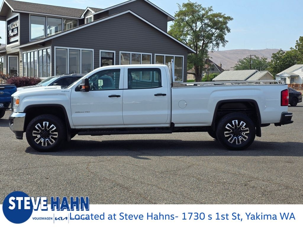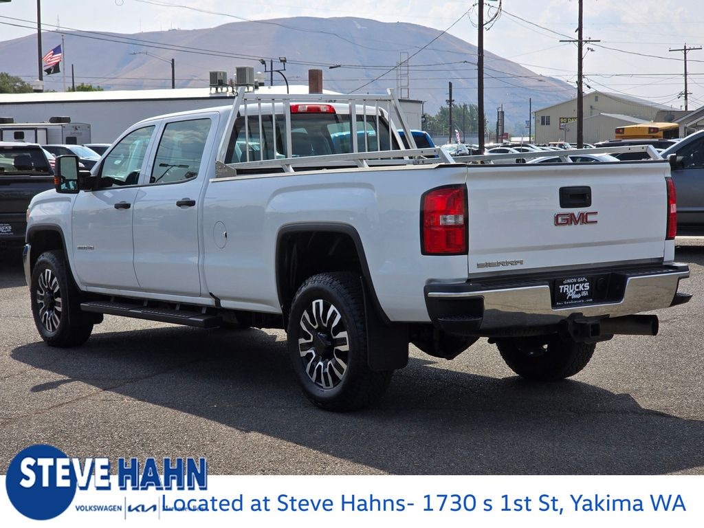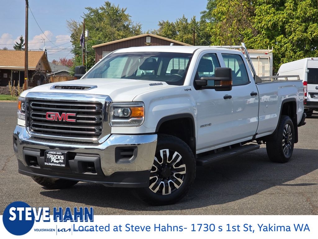 White 2019 GMC Sierra 3500HD Duramax 6.6L V8 Turbodiesel Allison 1000 6-Speed Automatic 4WD 4D Crew Cab Allison 1000 6-Speed Automatic, 4WD, Jet Black Cloth, 150 Amps Alternator, 18" Painted Steel Wheels, 3.5" Diagonal Monochromatic Display DIC, 4-Wheel Disc Brakes, 4.10 Rear Axle Ratio, 6 Speakers, 6-Speaker Audio System, ABS brakes, Air Conditioning, AM/FM radio, Base Steering Wheel, Black High-Visibility Outside Mirrors, Brake assist, Bumpers: chrome, Cloth Seat Trim, Delay-off headlights, Driver door bin, Dual front impact airbags, Electronic Stability Control, Exterior Parking Camera Rear, Front 40/20/40 Reclining Split-Bench Seat, Front anti-roll bar, Front Center Armrest w/Storage, Front reading lights, Front wheel independent suspension, Fully automatic headlights, High-Intensity Discharge Headlights, Low tire pressure warning, Occupant sensing airbag, Overhead console, Passenger door bin, Passenger vanity mirror, Power steering, Power windows, Premium audio system: GMC Infotainment System, Radio: AM/FM w/GMC Infotainment System, Rear 60/40 Folding Bench Seat (Folds Up), Rear reading lights, Rear seat center armrest, Rear step bumper, Speed control, Split folding rear seat, Standard Suspension Package, Tachometer, Tilt steering wheel, Traction control, Trailering Equipment, Trip computer, Variably intermittent wipers, Voltmeter, Allison 1000 6-Speed Automatic, 4WD, Jet Black Cloth.