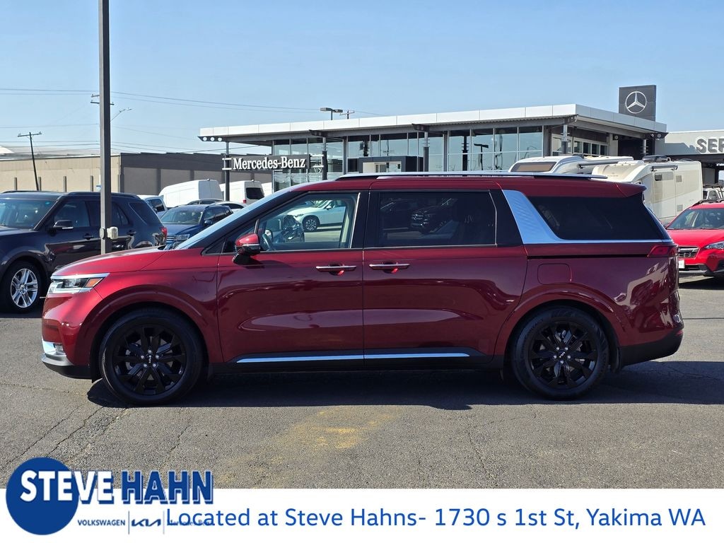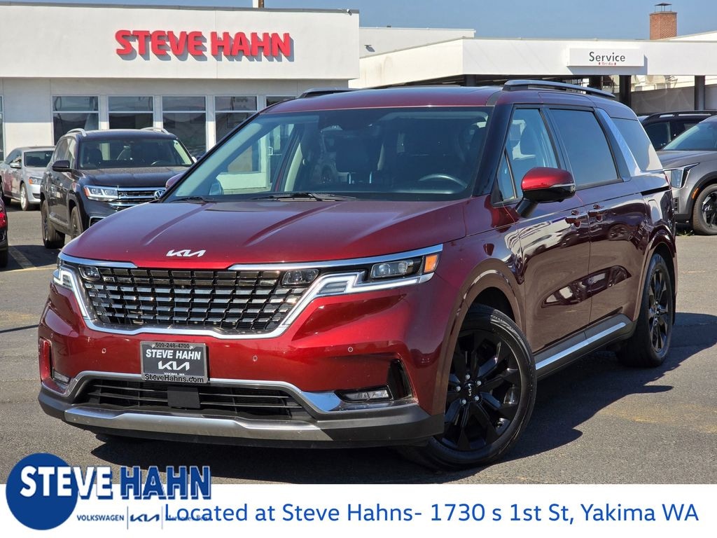 Flare Red 2022 Kia Carnival SX Prestige V6 8-Speed Automatic FWD 4D Passenger Van 12 Speakers, 3.51 Axle Ratio, 3rd row seats: split-bench, 4-way Power Driver's Lumbar Support, 4-Wheel Disc Brakes, 8 Way Power Driver's Seat, 8 Way Power Front Passenger's Seat, ABS brakes, Air Conditioning, Alloy wheels, AM/FM radio: SiriusXM, Apple CarPlay & Android Auto, Auto High-beam Headlights, Auto-dimming Rear-View mirror, Automatic temperature control, Brake assist, Bumpers: body-color, Compass, Delay-off headlights, Driver door bin, Driver vanity mirror, Driver's Seat & Mirrors Memory System, Dual front impact airbags, Dual front side impact airbags, Electronic Stability Control, Emergency communication system: UVO eServices, Four wheel independent suspension, Front anti-roll bar, Front Bucket Seats, Front Center Armrest, Front dual zone A/C, Front fog lights, Front reading lights, Fully automatic headlights, Garage door transmitter: HomeLink, Heated & Ventilated Front Bucket Seats, Heated door mirrors, Heated front seats, Heated rear seats, Heated steering wheel, Illuminated entry, Knee airbag, Leather Shift Knob, Leather steering wheel, Low tire pressure warning, Luxury Carpeted Floor Mats, Memory seat, Mud Guards, Navigation system: UVO eServices, Occupant sensing airbag, Outside temperature display, Overhead airbag, Overhead console, Panic alarm, Passenger door bin, Passenger vanity mirror, Power 2nd-Row Moonroof, Power door mirrors, Power driver seat, Power Liftgate, Power moonroof, Power passenger seat, Power steering, Power windows, Pure Leather Seat Trim, Radio: AM/FM/HD Audio System, Rear air conditioning, Rear anti-roll bar, Rear reading lights, Rear window defroster, Rear window wiper, Reclining 3rd row seat, Remote keyless entry, Roof rack: rails only, Security system, Speed control, Speed-sensing steering, Split folding rear seat, Spoiler, Steering wheel mounted audio controls, Tachometer, Telescoping steering wheel, Tilt steering wheel, Traction control, Trip computer, Turn signal indicator mirrors, Variably intermittent wipers, Ventilated front seats, Ventilated rear seats, Wheels: 7.5J x 19" Black Painted Alloy.