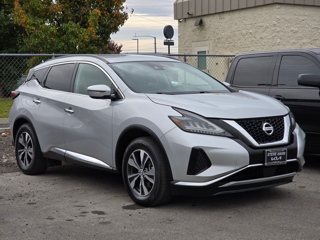 Recent Arrival! Clean CARFAX. Brilliant Silver Metallic 2020 Nissan Murano SV 3.5L V6 DOHC 24V CVT with Xtronic AWD 4D Sport Utility CVT with Xtronic, AWD, 4-Wheel Disc Brakes, 4.667 Axle Ratio, 6 Speakers, ABS brakes, Air Conditioning, Alloy wheels, AM/FM radio: SiriusXM, AM/FM/CD/MP3/WMA Audio System, Auto High-beam Headlights, Auto-dimming Rear-View mirror, Automatic temperature control, Blind Spot Warning, Brake assist, Bumpers: body-color, Carpeted Floor Mats & Carpeted Cargo Mat, CD player, Child-Seat-Sensing Airbag, Cloth Seat Trim, Delay-off headlights, Driver door bin, Driver vanity mirror, Dual front impact airbags, Dual front side impact airbags, Electronic Stability Control, Four wheel independent suspension, Front anti-roll bar, Front Bucket Seats, Front Center Armrest, Front dual zone A/C, Front reading lights, Fully automatic headlights, Garage door transmitter: HomeLink, Heated door mirrors, Illuminated entry, Knee airbag, Leather Shift Knob, Low tire pressure warning, NissanConnect featuring Apple CarPlay and Android Auto, Occupant sensing airbag, Outside temperature display, Overhead airbag, Overhead console, Panic alarm, Passenger door bin, Passenger vanity mirror, Power door mirrors, Power driver seat, Power passenger seat, Power steering, Power windows, Radio data system, Rear anti-roll bar, Rear Parking Sensors, Rear reading lights, Rear seat center armrest, Rear side impact airbag, Rear window defroster, Rear window wiper, Remote keyless entry, Roof rack: rails only, Security system, Speed control, Speed-sensing steering, Speed-Sensitive Wipers, Split folding rear seat, Spoiler, Steering wheel mounted audio controls, Tachometer, Telescoping steering wheel, Tilt steering wheel, Traction control, Trip computer, Turn signal indicator mirrors, Variably intermittent wipers, Wheels: 18" Machined Aluminum-Alloy, CVT with Xtronic, AWD.