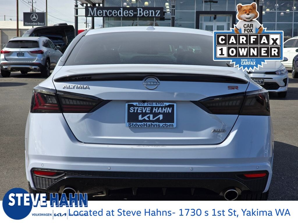 CARFAX One-Owner. Clean CARFAX. Gray Sky Pearl 2024 Nissan Altima 2.5 SR 2.5L 4-Cylinder DOHC 16V CVT with Xtronic AWD 4D Sedan CVT with Xtronic, 2-Way Driver Power Lumbar Support, 4-Way Power Passenger Seat, 4-Wheel Disc Brakes, 6 Speakers, ABS brakes, Air Conditioning, Alloy wheels, AM/FM radio: SiriusXM, Auto High-beam Headlights, Blind Spot Warning, Body-Colored Rear Spoiler, Body-Colored Splash Guards, Brake assist, Bumpers: body-color, Delay-off headlights, Driver door bin, Driver vanity mirror, Dual front impact airbags, Dual front side impact airbags, Electronic Stability Control, External Ground Lighting w/Logo, Four wheel independent suspension, Front anti-roll bar, Front Bucket Seats, Front Center Armrest, Front reading lights, Fully automatic headlights, Heated Front Seats, Illuminated entry, Knee airbag, Leather Shift Knob, Leather-Appointed Seat Trim, Low tire pressure warning, NissanConnect, NissanConnect featuring Apple CarPlay, Occupant sensing airbag, Outside temperature display, Overhead airbag, Overhead console, Panic alarm, Passenger door bin, Passenger vanity mirror, Power door mirrors, Power driver seat, Power steering, Power windows, Premium Sport Interior Finishers, Radio data system, Radio: AM/FM Audio System, Rear anti-roll bar, Rear Parking Sensors, Rear reading lights, Rear seat center armrest, Rear side impact airbag, Rear window defroster, Remote keyless entry, Security system, Single Panel Moonroof, Speed control, Speed-sensing steering, Speed-Sensitive Wipers, Split folding rear seat, Sport Seat Trim, SR Floor Mats/Trunk Mat/Hideaway Nets, SR Premium Package, Steering wheel mounted audio controls, Tachometer, Telescoping steering wheel, Tilt steering wheel, Traction control, Trip computer, Trunk Organizer Tray, Unique Sport Seats, Variably intermittent wipers, Wheels: 19" Sport Alloy, CVT with Xtronic.