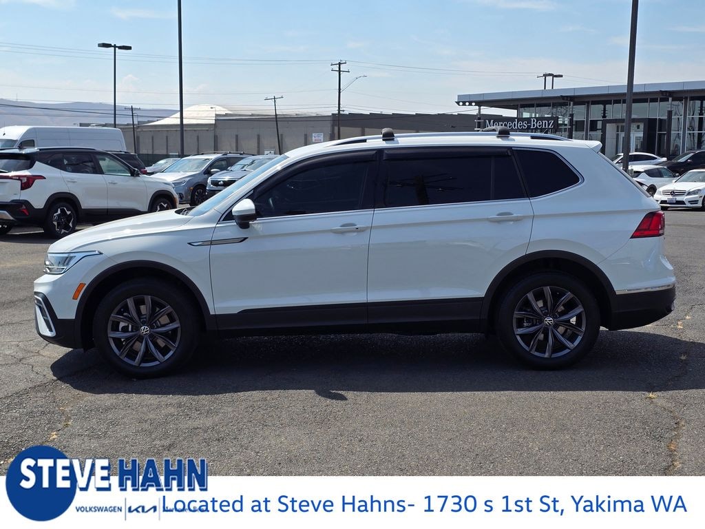 Recent Arrival! Clean CARFAX. White 2022 Volkswagen Tiguan 2.0T SE 2.0L TSI DOHC 8-Speed Automatic with Tiptronic AWD 4D Sport Utility AWD, 3.33 Axle Ratio, 4-Wheel Disc Brakes, 4-Wheel Independent Suspension, 6 Speakers, ABS brakes, Air Conditioning, Alloy wheels, AM/FM radio: SiriusXM with 360L, Auto-dimming Rear-View mirror, Automatic temperature control, Brake assist, Bumpers: body-color, Compass, Delay-off headlights, Driver door bin, Driver vanity mirror, Dual front impact airbags, Dual front side impact airbags, Electronic Stability Control, Emergency communication system: Car-Net, Exterior Parking Camera Rear, Four wheel independent suspension, Front anti-roll bar, Front Bucket Seats, Front Center Armrest, Front dual zone A/C, Front reading lights, Fully automatic headlights, Heated door mirrors, Heated Front Comfort Seats, Heated front seats, Illuminated entry, Leather Shift Knob, Low tire pressure warning, Occupant sensing airbag, Outside temperature display, Overhead airbag, Overhead console, Panic alarm, Passenger door bin, Passenger vanity mirror, Perforated V-Tex Leatherette Seating Surfaces, Power door mirrors, Power driver seat, Power Liftgate, Power steering, Power windows, Radio data system, Radio: MIB3 Composition Media AM/FM/HD, Rain sensing wipers, Rear anti-roll bar, Rear reading lights, Rear seat center armrest, Rear window defroster, Rear window wiper, Remote keyless entry, Roof rack: rails only, Security system, Speed control, Speed-sensing steering, Split folding rear seat, Spoiler, Steering wheel mounted audio controls, Tachometer, Telescoping steering wheel, Tilt steering wheel, Traction control, Trip computer, Turn signal indicator mirrors, Variably intermittent wipers, Wheels: 18" Dark Graphite 10-Spoke Alloy, AWD.